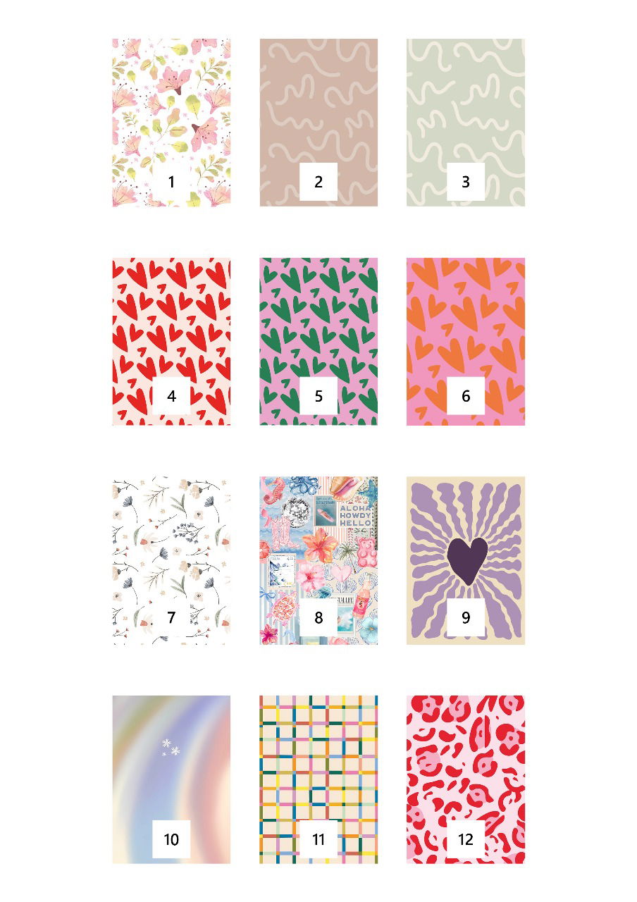 DISEÑO: Dejame un mensaje con el número del diseño elegido del catálogo, o mandame al mail la imagen que vos quieras - mail: kilig.encuadernacion@gmail.com